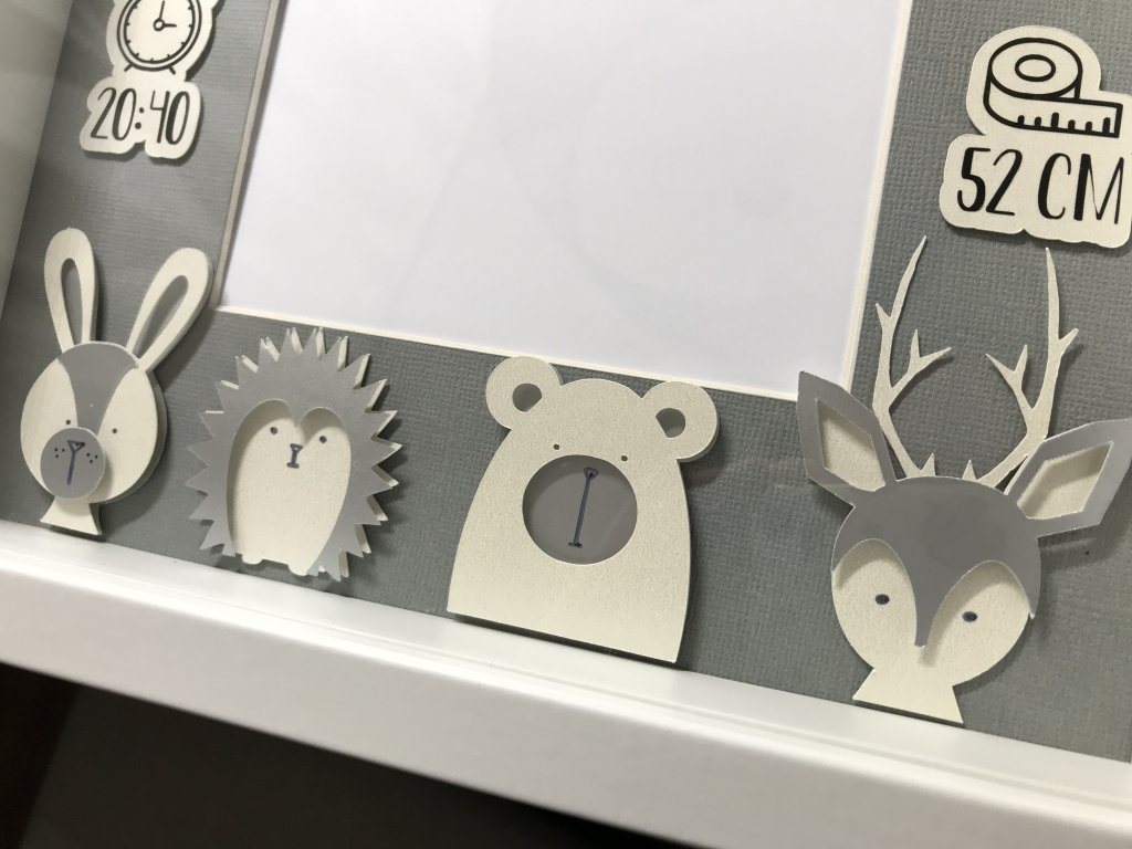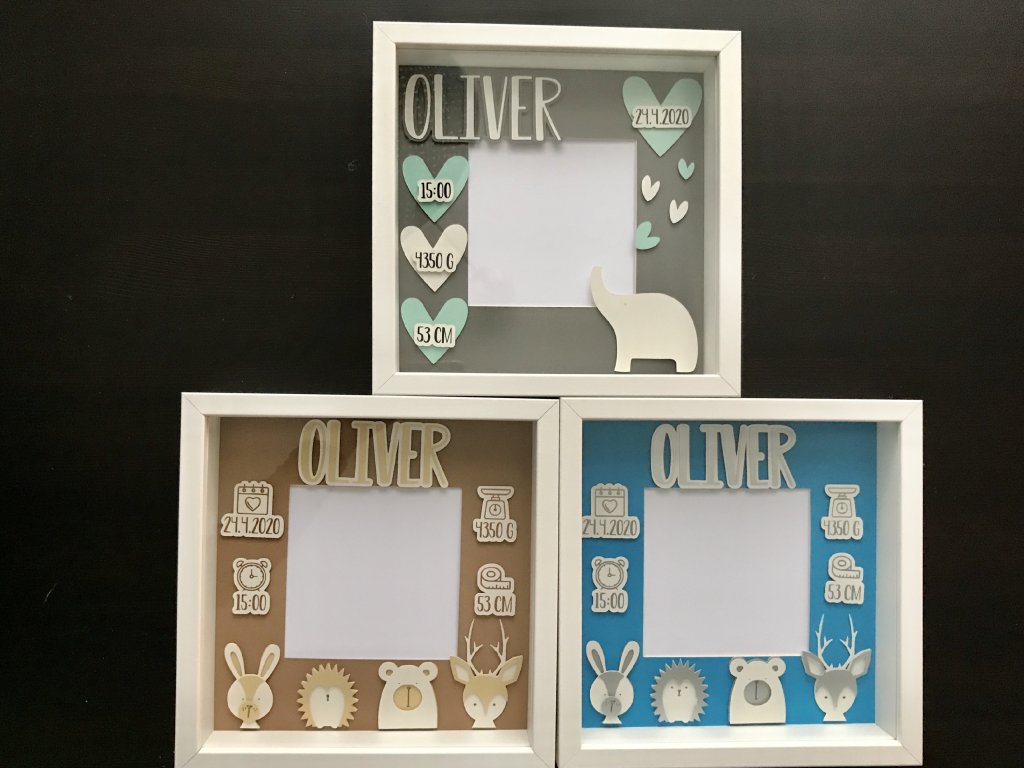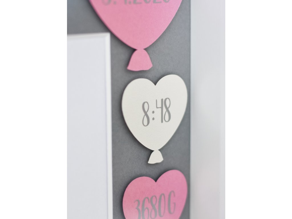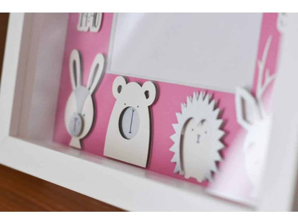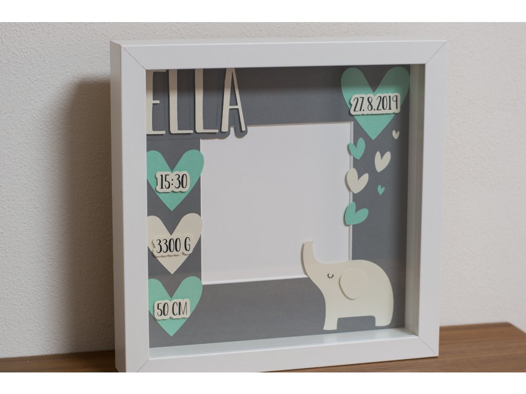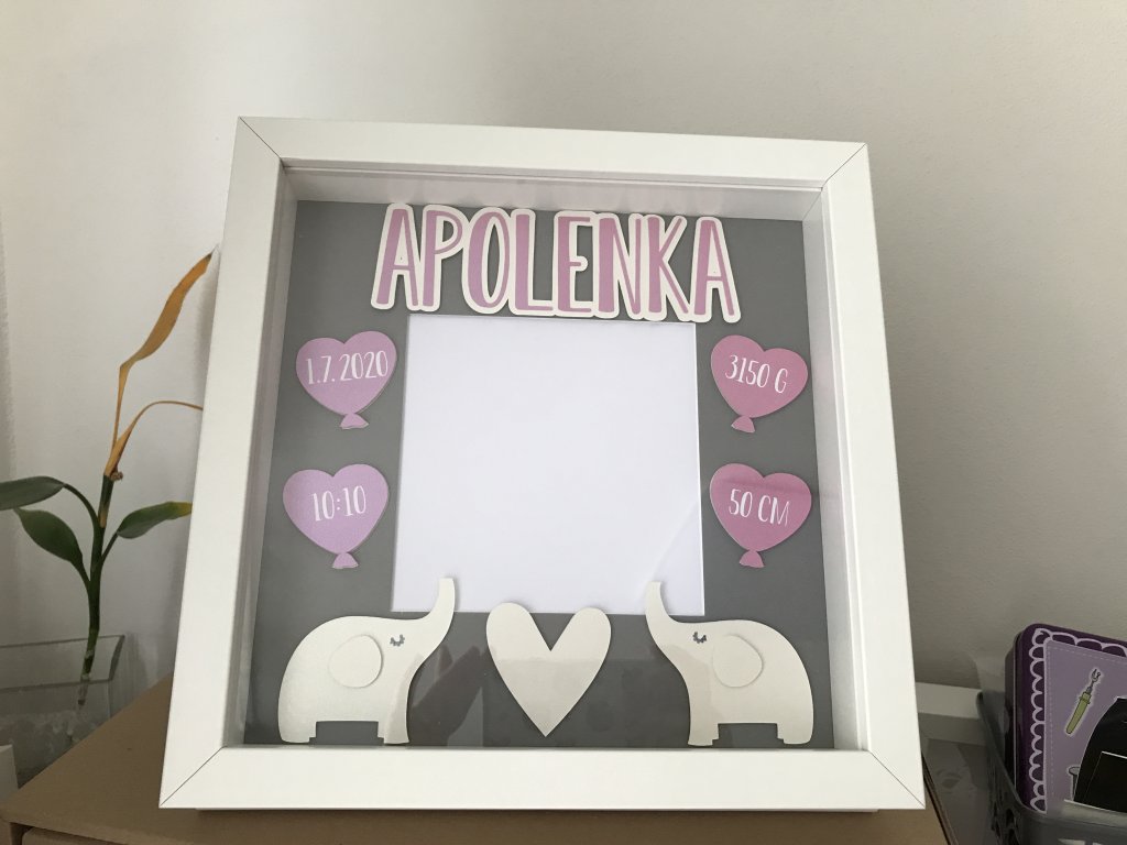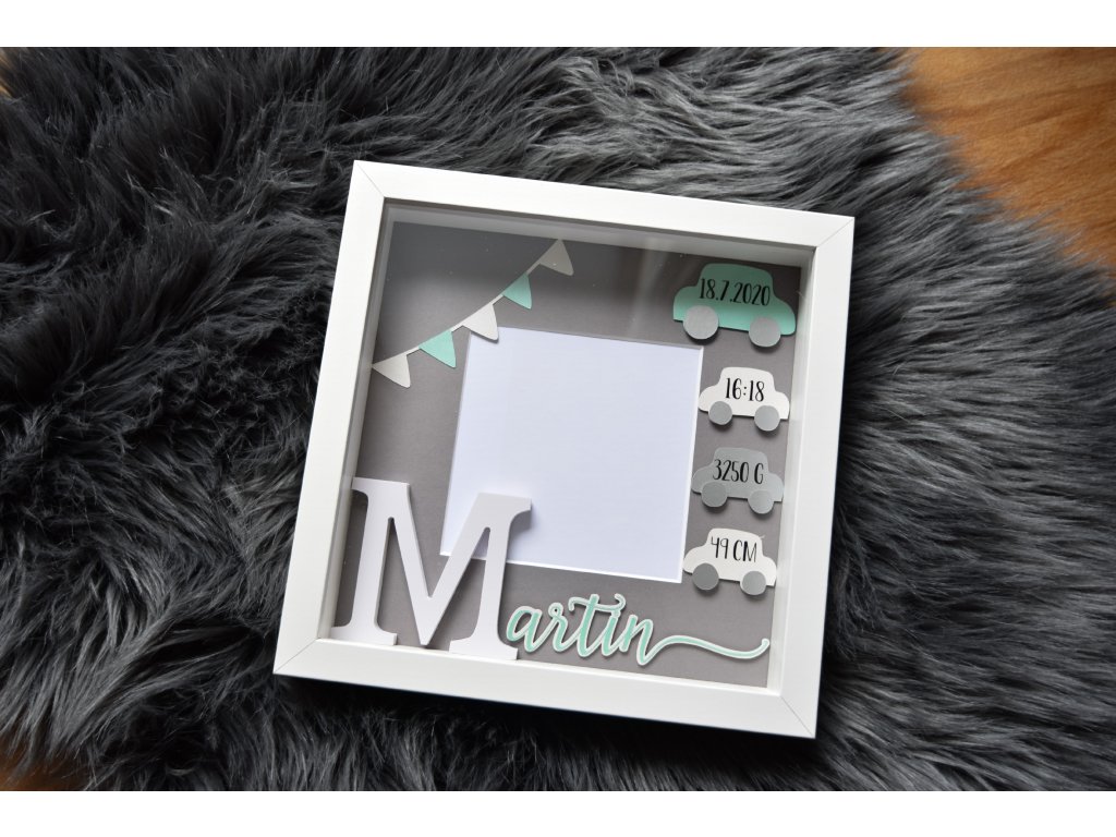Dekorace do dětského pokoje, rámeček se jménem a daty narození.