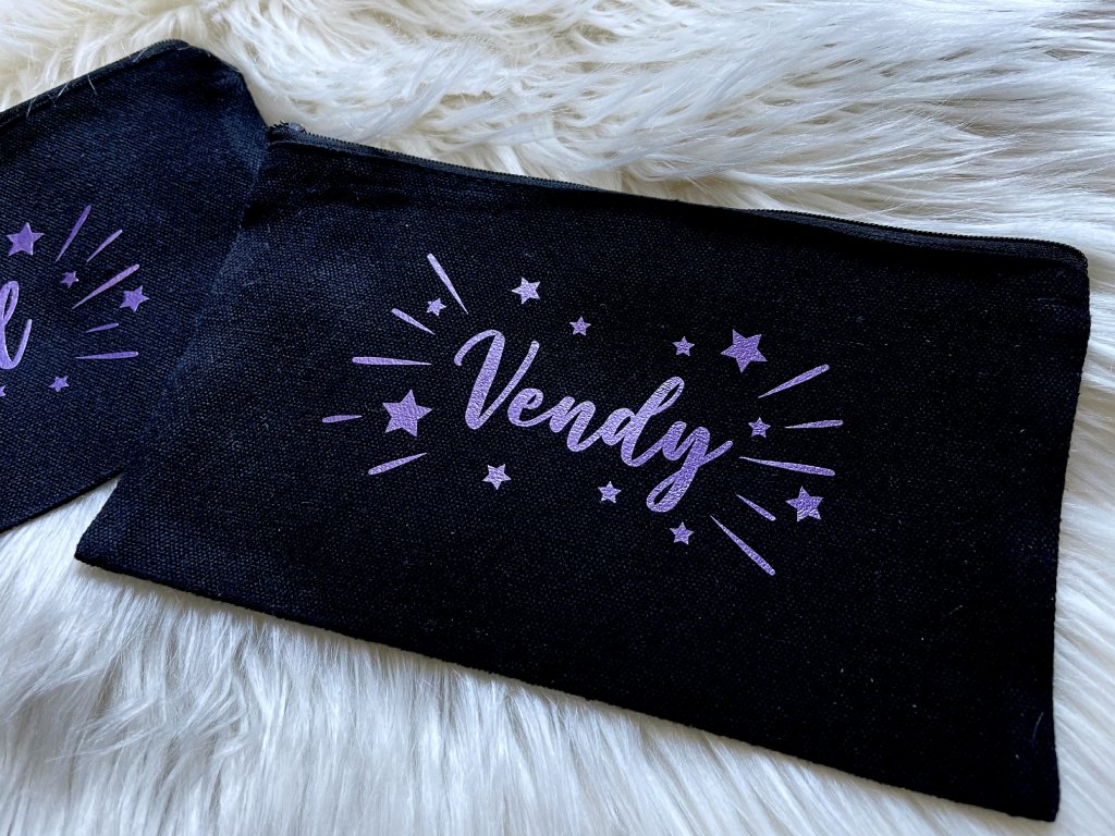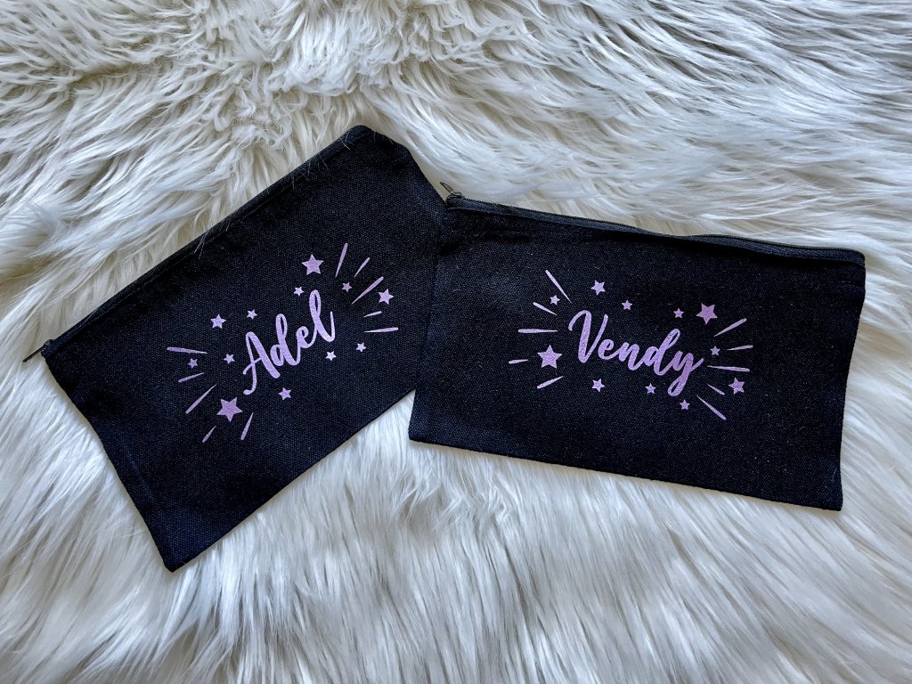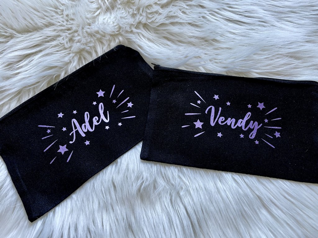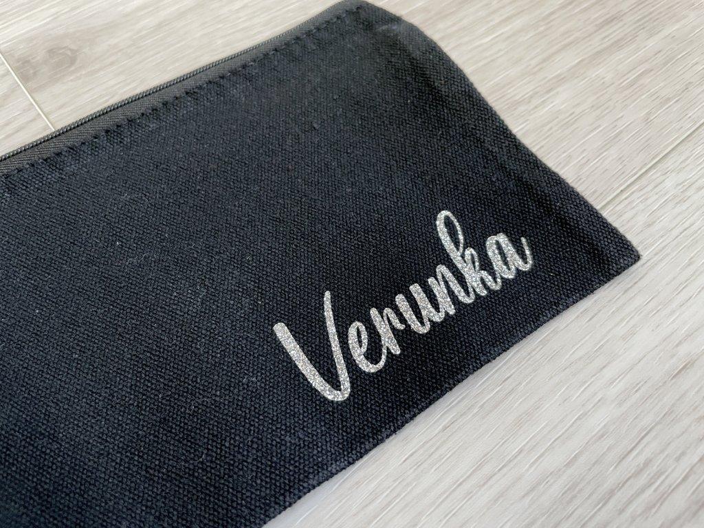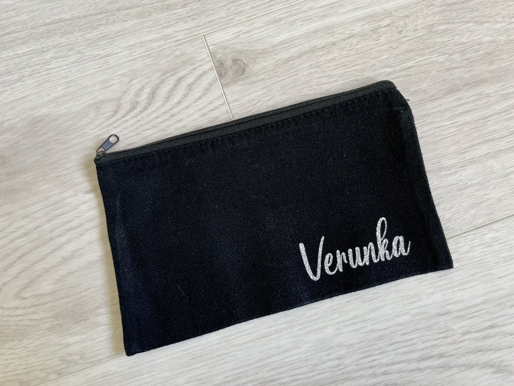 Taštička na důležité nezbytnosti, make-up, nebo na uspořádání drobných věci v kabelce. Taštičku možno dozdobit dle Vašeho přání, např. jménem, jednoduchým motivem nebo iniciály.